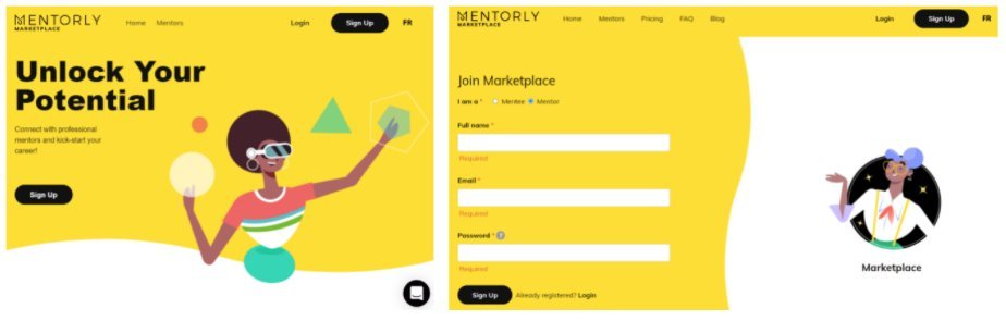 La première étape consiste à s'inscrire à Mentorly ! Dirigez-vous vers https://marketplace.mentorly.co/fr et cliquez sur le bouton « S'inscrire » de la page d'accueil du marché, puis sur l'option « Mentor ».