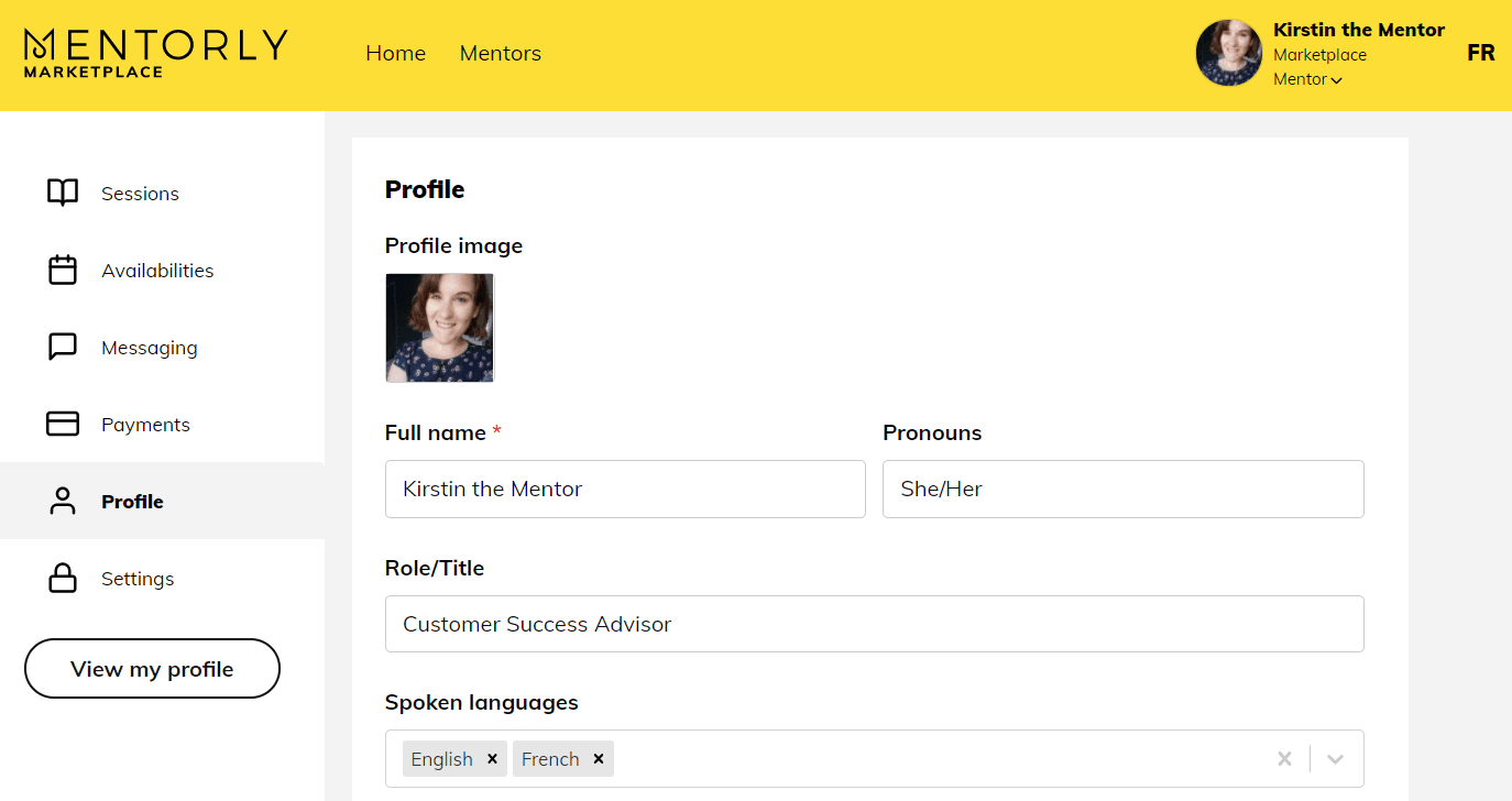 Une fois que vous avez terminé votre inscription, vous serez amené à votre tableau de bord personnel Mentorly. De là, vous pouvez finir de compléter votre profil en cliquant sur l'onglet « Profil » sur le côté gauche.