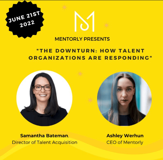 “The Downturn: How Talent Organizations are Responding” with Ashley Werhun, CEO of Mentorly and a special guest, Samantha Bateman (She/Her), Director of Talent Acquisition and founder of Integria.