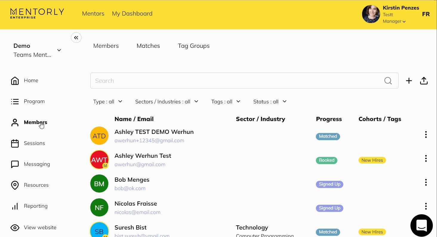 Mentorly vous donne les outils clés pour ajouter des membres à votre programme et comment gérer leur processus d'intégration le mieux possible.