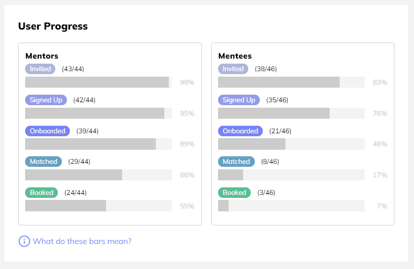 Bon à savoir : votre programme n'exige peut-être pas que des mentors et des mentorés soient jumelés, et ce n'est pas grave ! Vous pouvez simplement ignorer cette barre de progression si tel est le cas.
