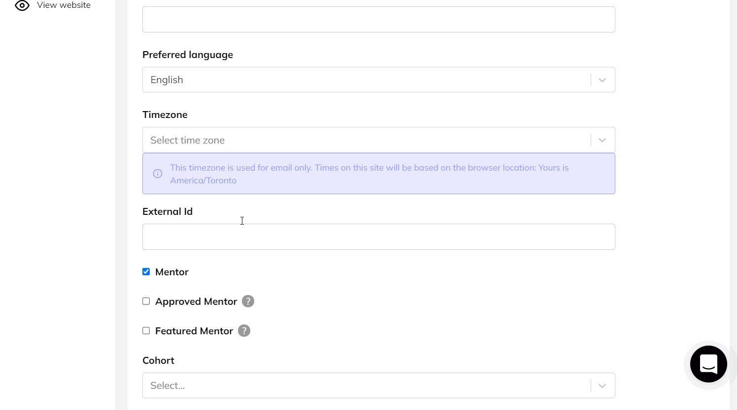 Cliquez sur le bouton +, entrez son nom et son courriel. Si le membre est un mentor, cliquez simplement sur la case qui dit « Mentor ». Appuyez sur Enregistrer et envoyez-leur un courriel d'invitation, où ils peuvent s'inscrire et commencer à remplir leur profil.