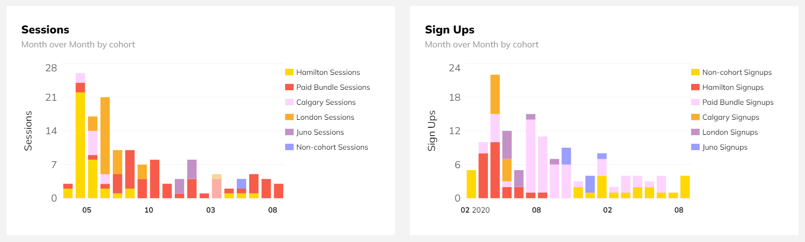 Les cohortes ont une fonctionnalité de rapport - cela signifie que l'onglet Statistiques > Activité décomposera les données par cohorte. C'est très bien si vous voulez comparer le nombre d'inscriptions ou de sessions par cohorte.