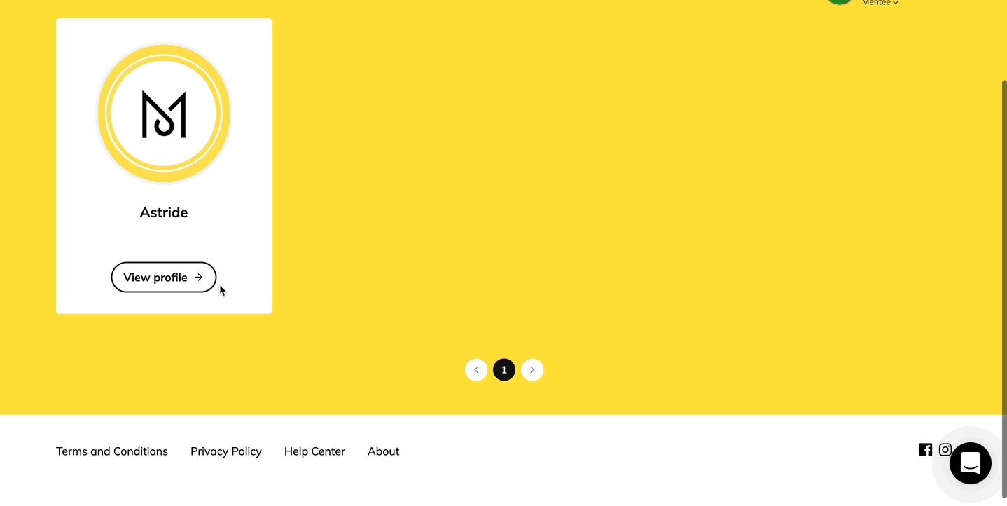 Une fois que vous avez trouvé le ou la mentor·e que vous recherchez, cliquez sur son profil, faites défiler l'écran vers le bas et vous pourrez choisir entre les deux options suivantes :