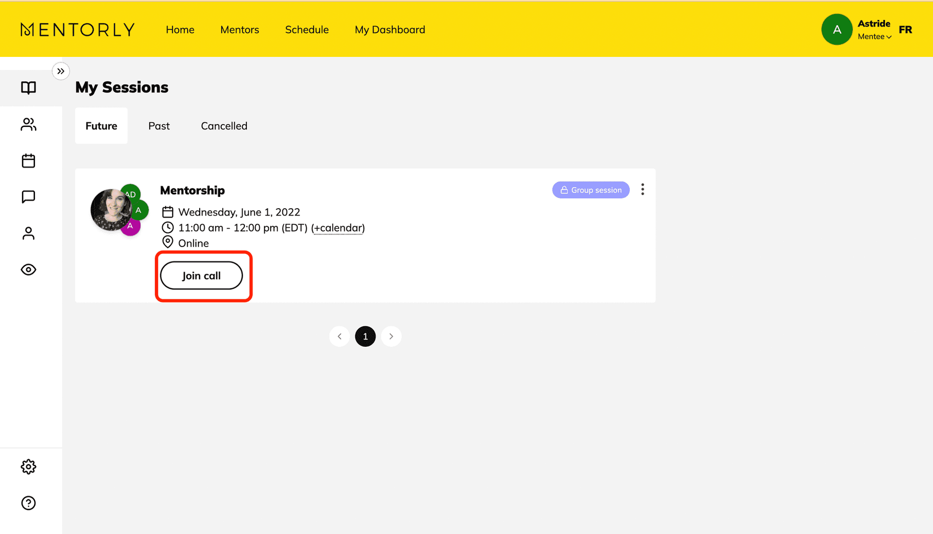 Si la demande de réservation est approuvée, vous verrez la réservation sur votre Page de réservations et vous pourrez rejoindre l'appel vidéo 10 minutes avant votre session.
